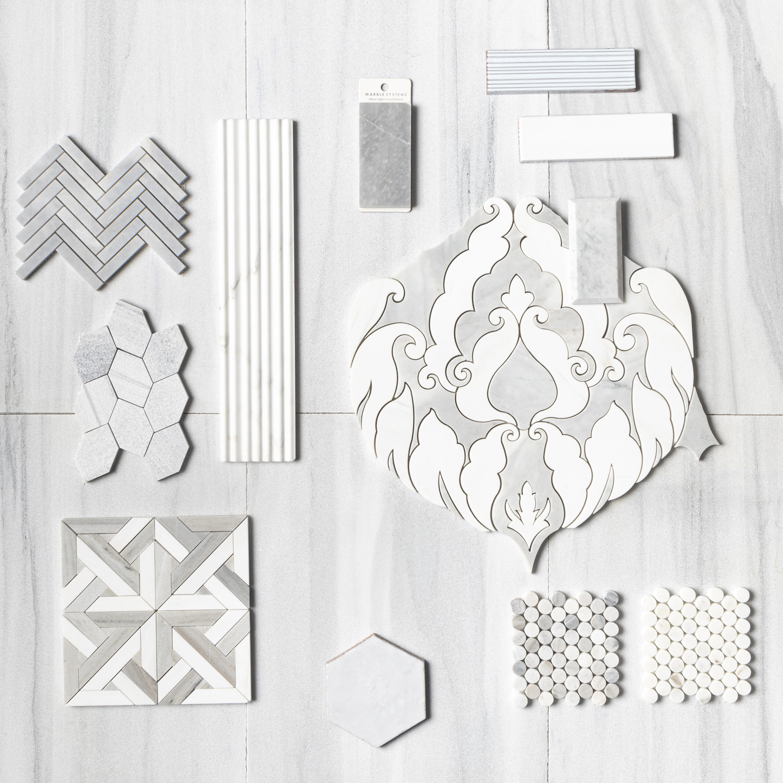 Avenza Light, Snow White Multi Finish Marmara Marble Mosaic