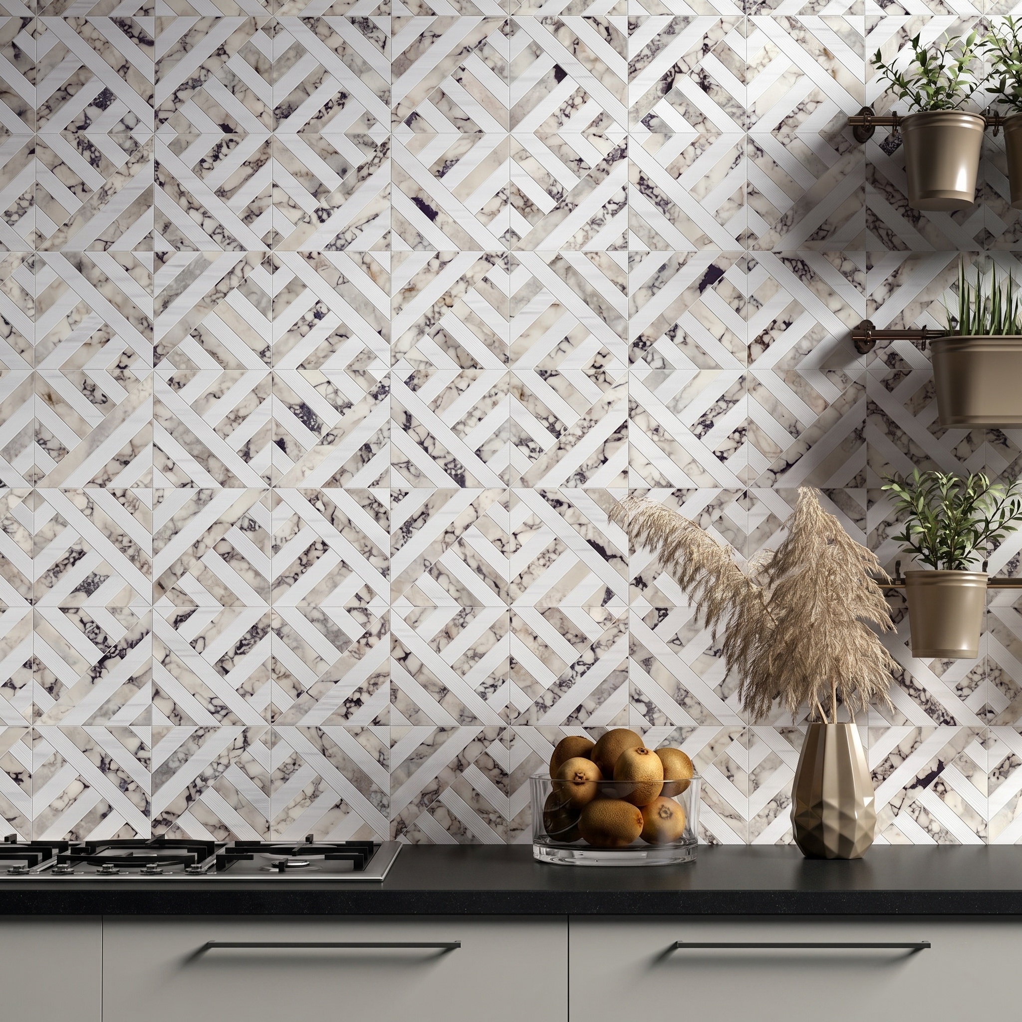 5) Dark Duo: Bordeaux Details of Calacatta Marble with Black